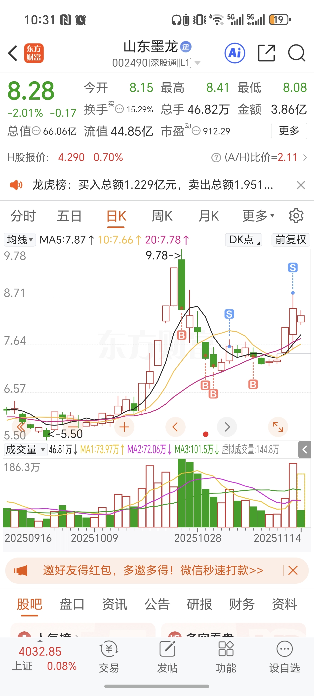 $山东墨龙(SZ002490)$ 丝毫不慌,现在成本2.7留了一手,昨天8.8清了