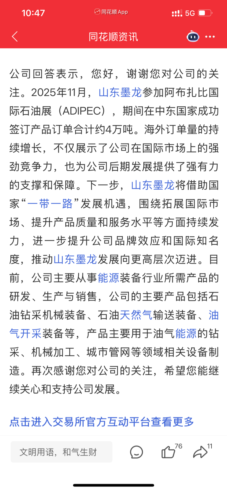 $山东墨龙(SZ002490)$ 这么大的海外订单