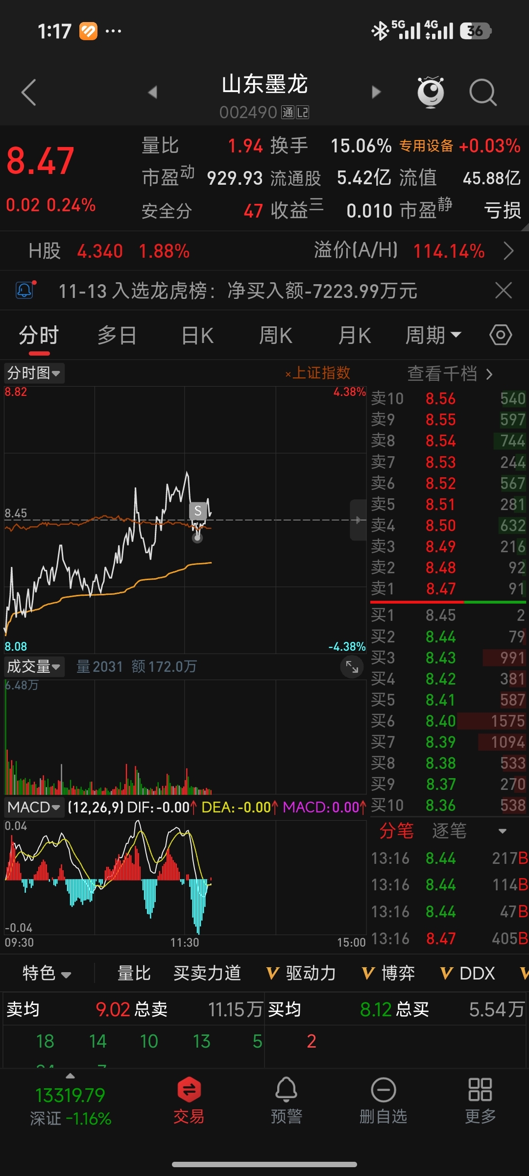 $山东墨龙(SZ002490)$  山东墨龙9%止盈