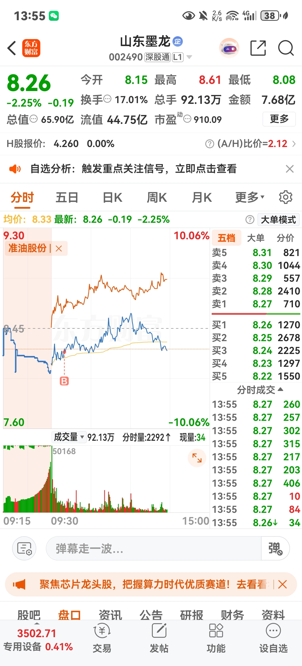 $山东墨龙(SZ002490)$ 已经被抛弃了,跟准有分化了,下周等着扣钱吧,挨