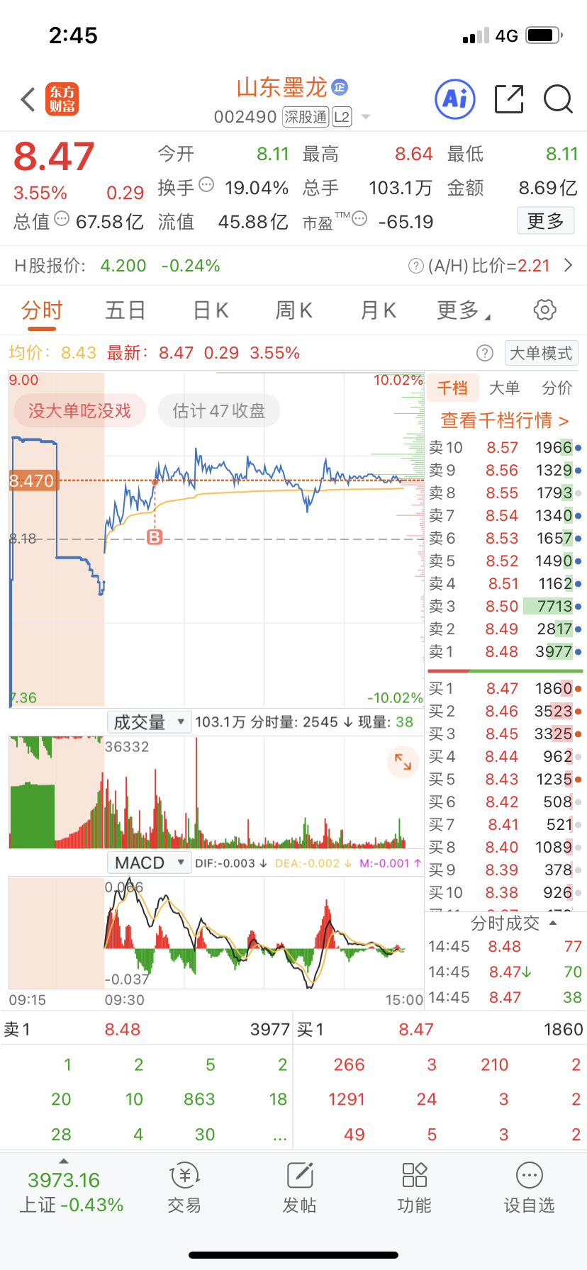 $山东墨龙(SZ002490)$ 什么意思啊,在我成本线上疯狂摩擦