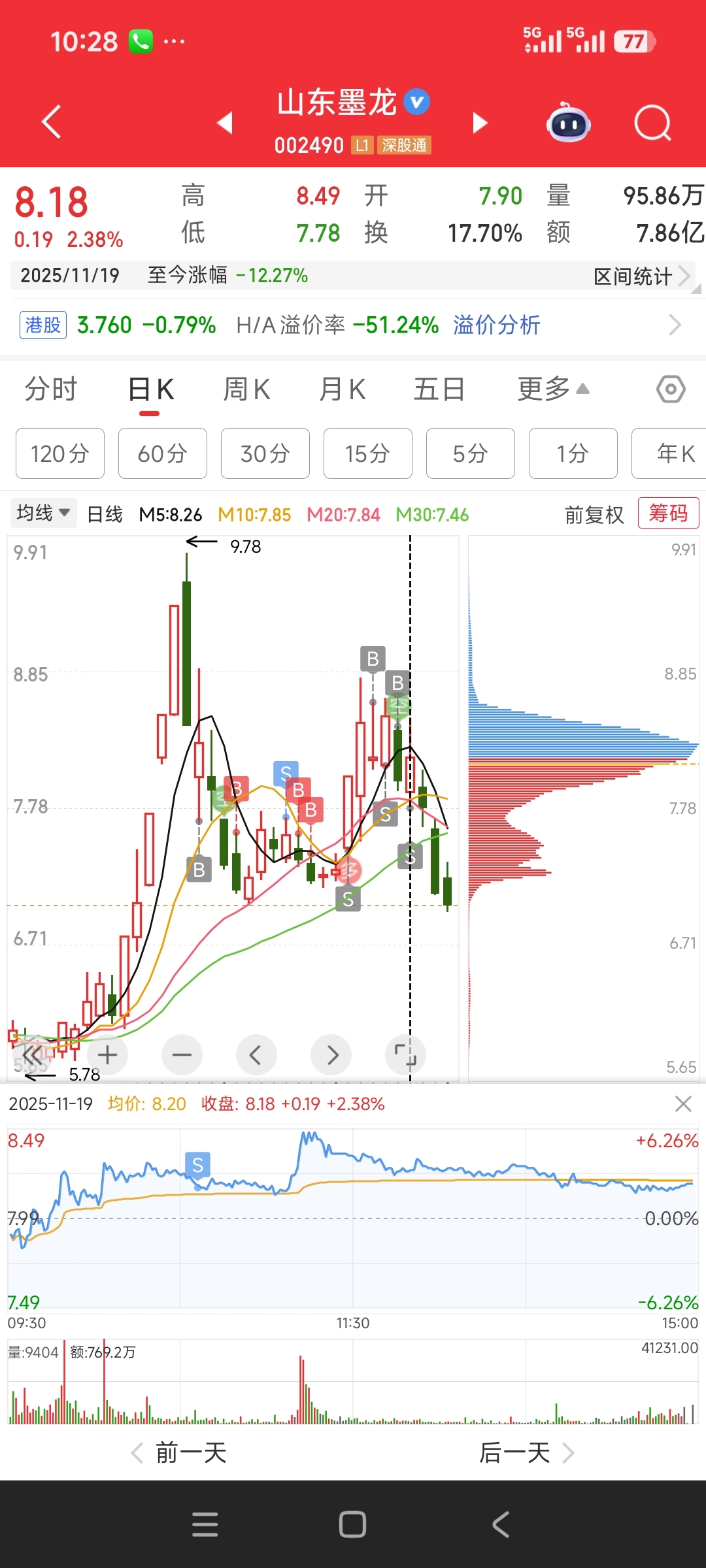 $山东墨龙(SZ002490)$ 上个星期卖的,真不知道什么时候止跌,早上买航天发展强势股$航天发展(SZ000547)$