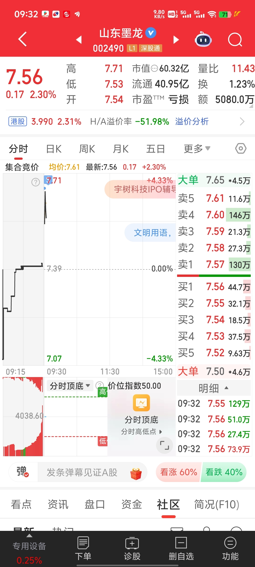 $山东墨龙(SZ002490)$ 7.68卖给哪个小馋猫啦
