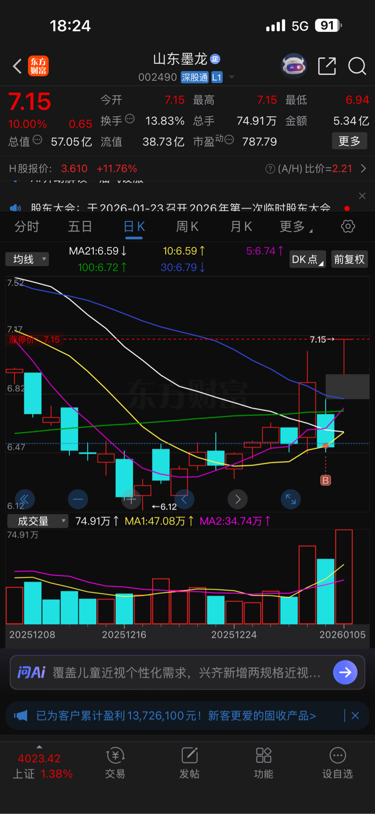 $山东墨龙(SZ002490)$ 策略选股没问题