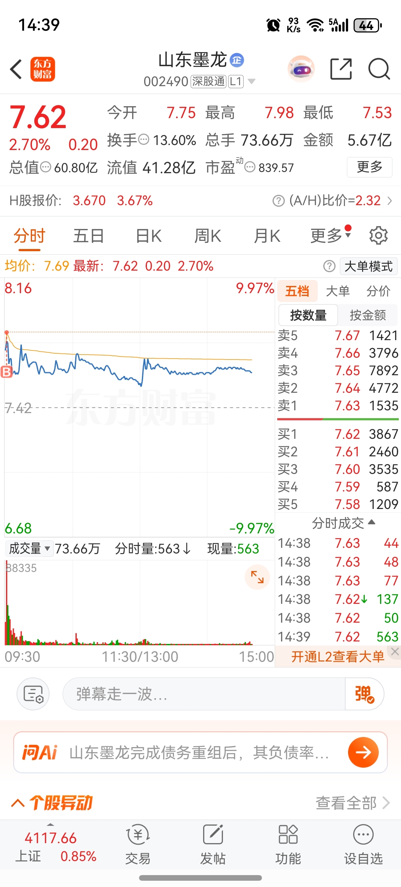 $山东墨龙(SZ002490)$ 无所谓