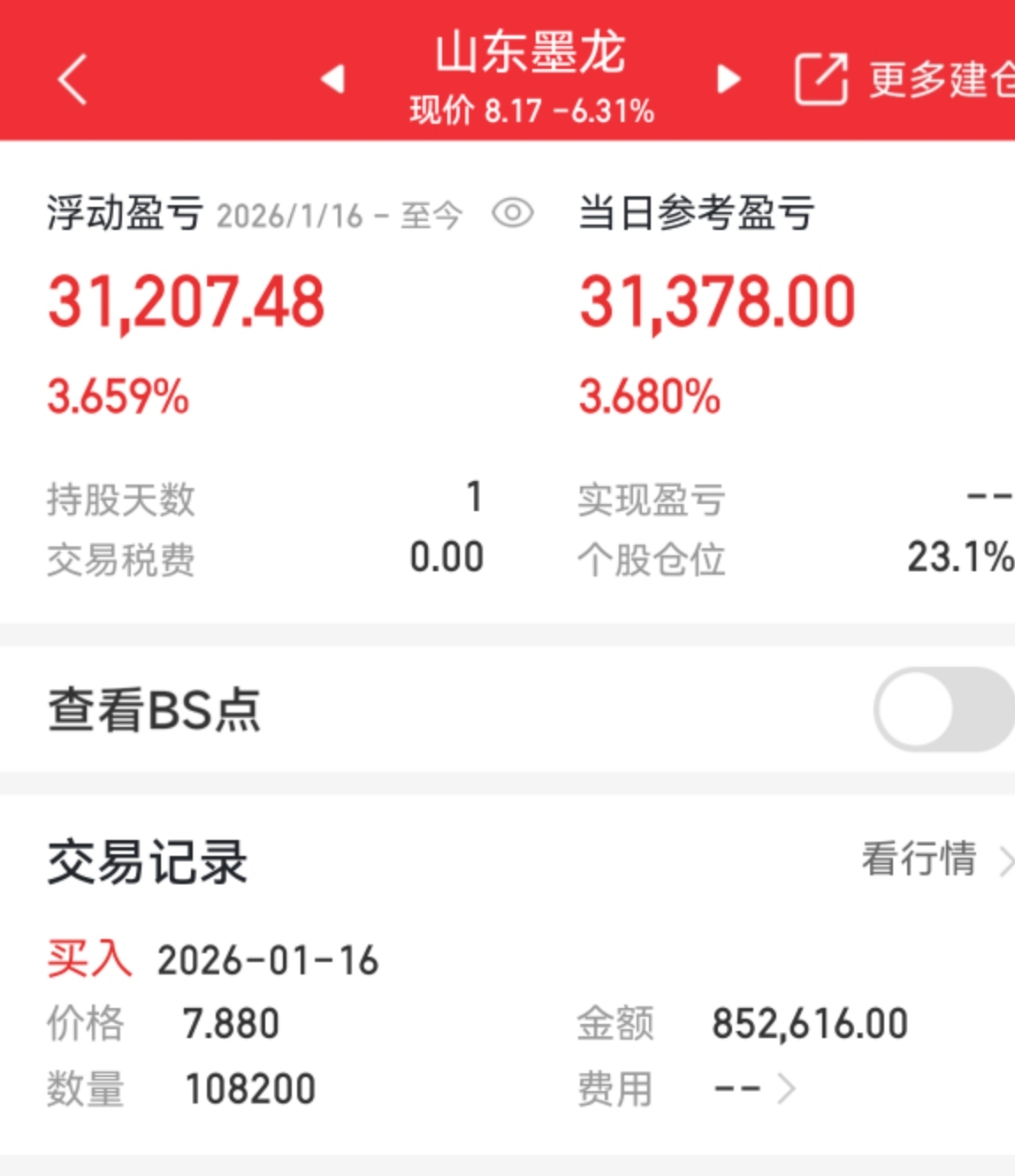 002490山东墨龙,如意早盘水下低吸你们羡慕吗