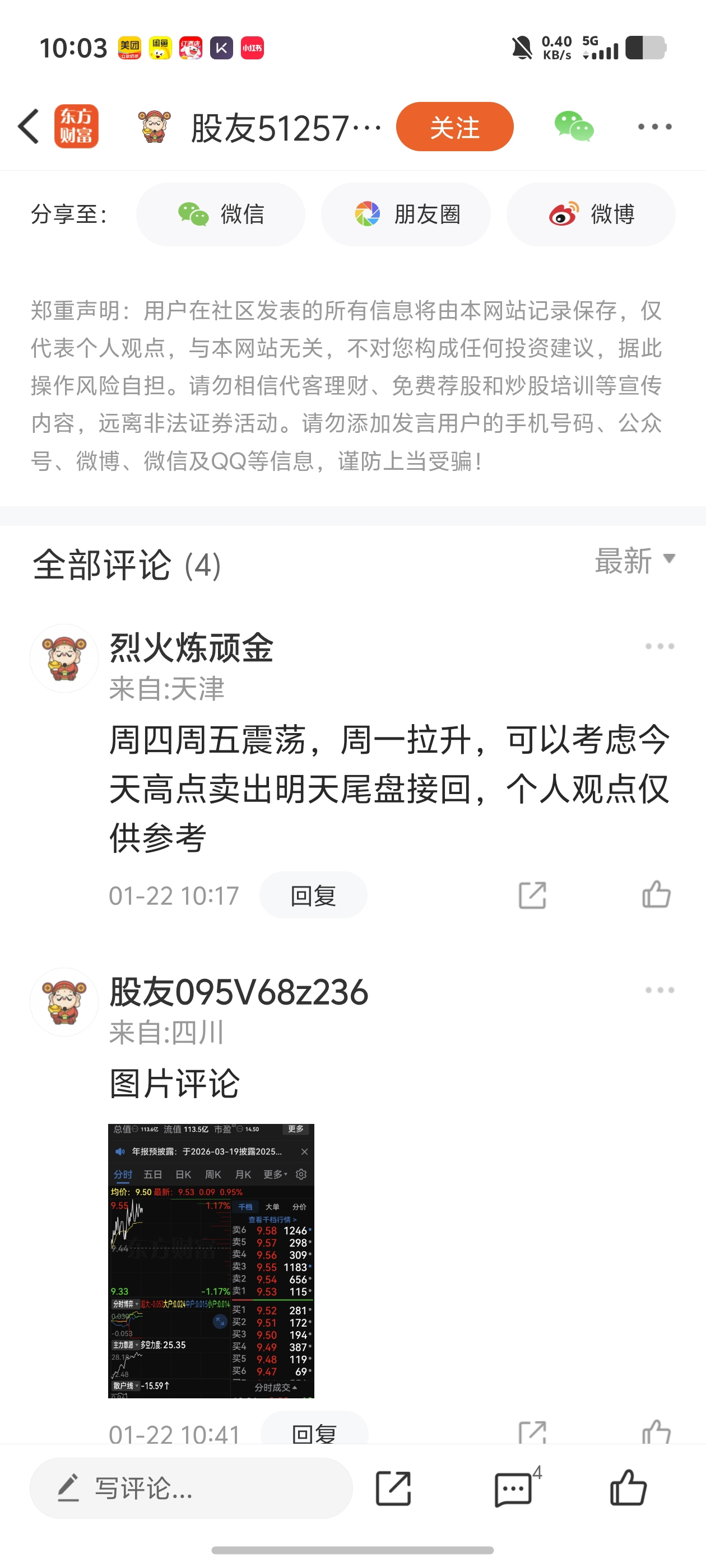 温馨提示: 1.根据《证券法》规定,禁止编造、传播虚假信息或者误导性信息,扰乱证券市场;2.用户在本社区发表的所有资料、言论等仅代表个人观点,与本网站立场无关,不对您构成任何投资建议。用户应基于自己的独立判断,自行决定证券投资并承担相应风险。《东方财富社区管理规定》