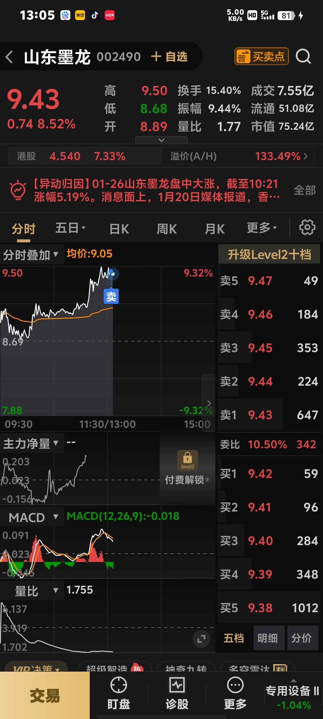 $山东墨龙(SZ002490)$ 感谢主力,见好就收!