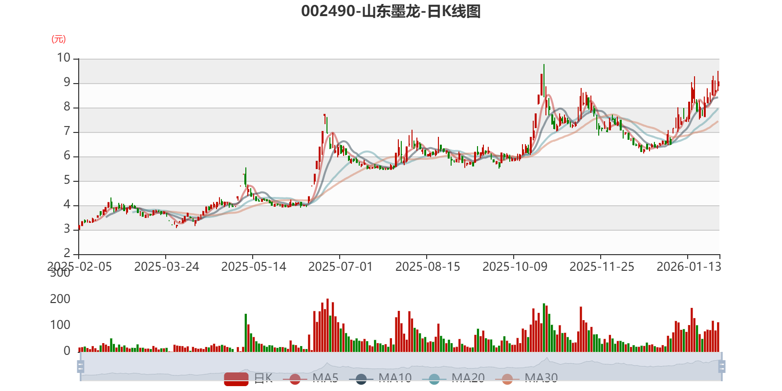 中证智能财讯山东墨龙(002490)1月28日晚间披露2025年度业绩预告,预计2025年归母净利润400万元至600万元,上年同期亏损4369.98万元;扣非净利润亏损2500万元至2850万元,上年同期亏损3.11亿元;基本每股收益0.005元/股-0.008元/股。以1月28日收盘价计算,山东墨龙目前市盈率(TTM)约为1203.42倍-1805.13倍,市净率(LF)约14.5倍,市销率(TTM)约4.67倍。