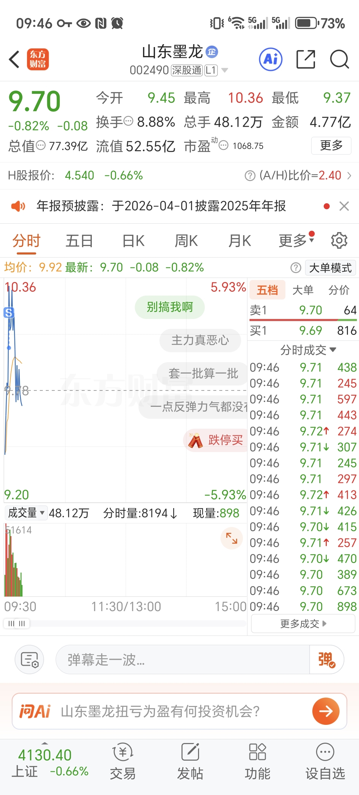 $山东墨龙(SZ002490)$ 还好没追高