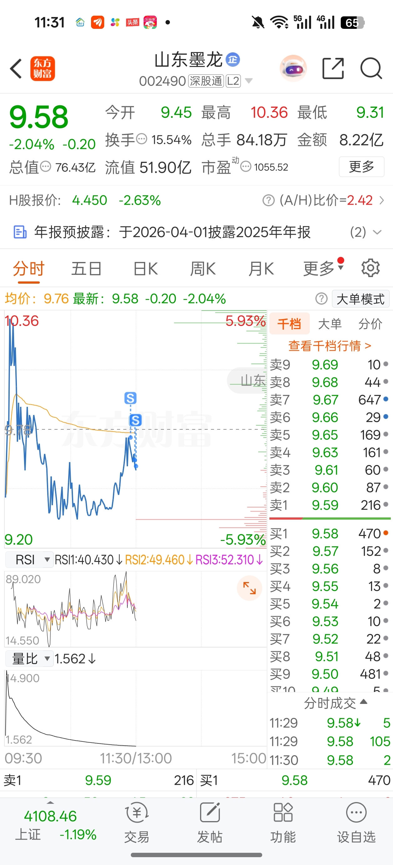 $山东墨龙(SZ002490)$ 我怕下午如果原油崩了开盘踩踏,所以先出来了,感谢拉起来让我亏了0.7个点跑了,这个票现在是病龙完全跟屁虫,不过好的是拉上来容易砸下去也容易,估计在等朗朗打仗爆发吧,希望在里面的发财