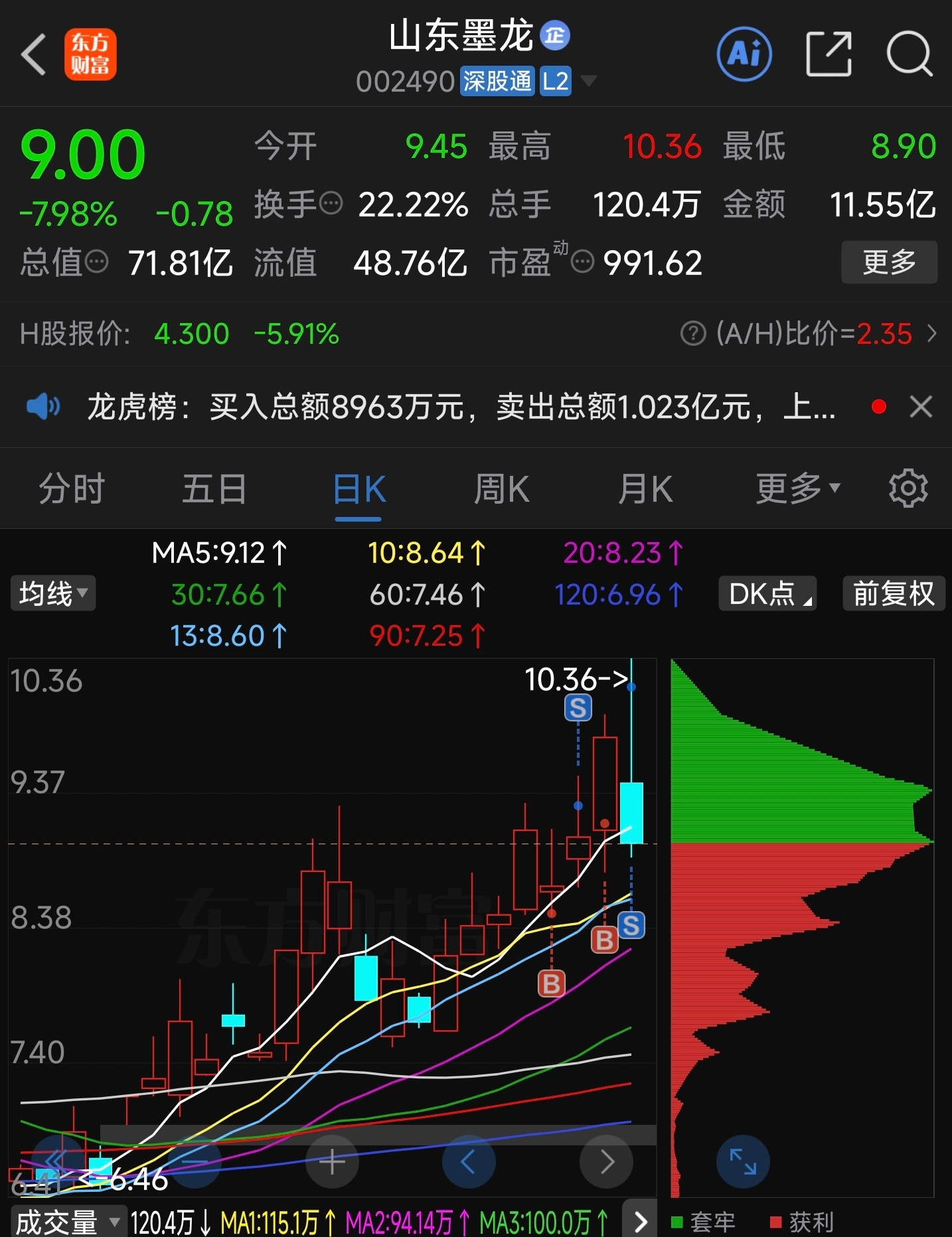 $山东墨龙(SZ002490)$ 周一再来抄底