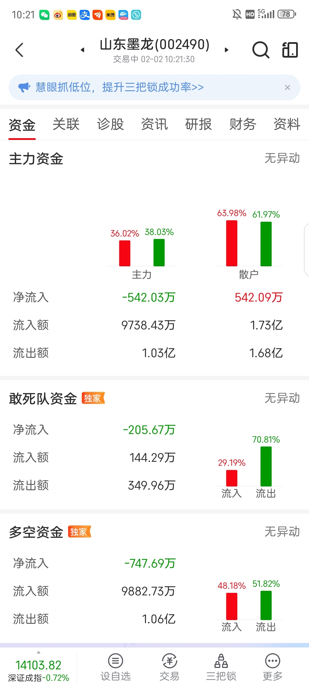 通源还是净流入的,墨龙也没流出多少,怎么就能封住跌停呢