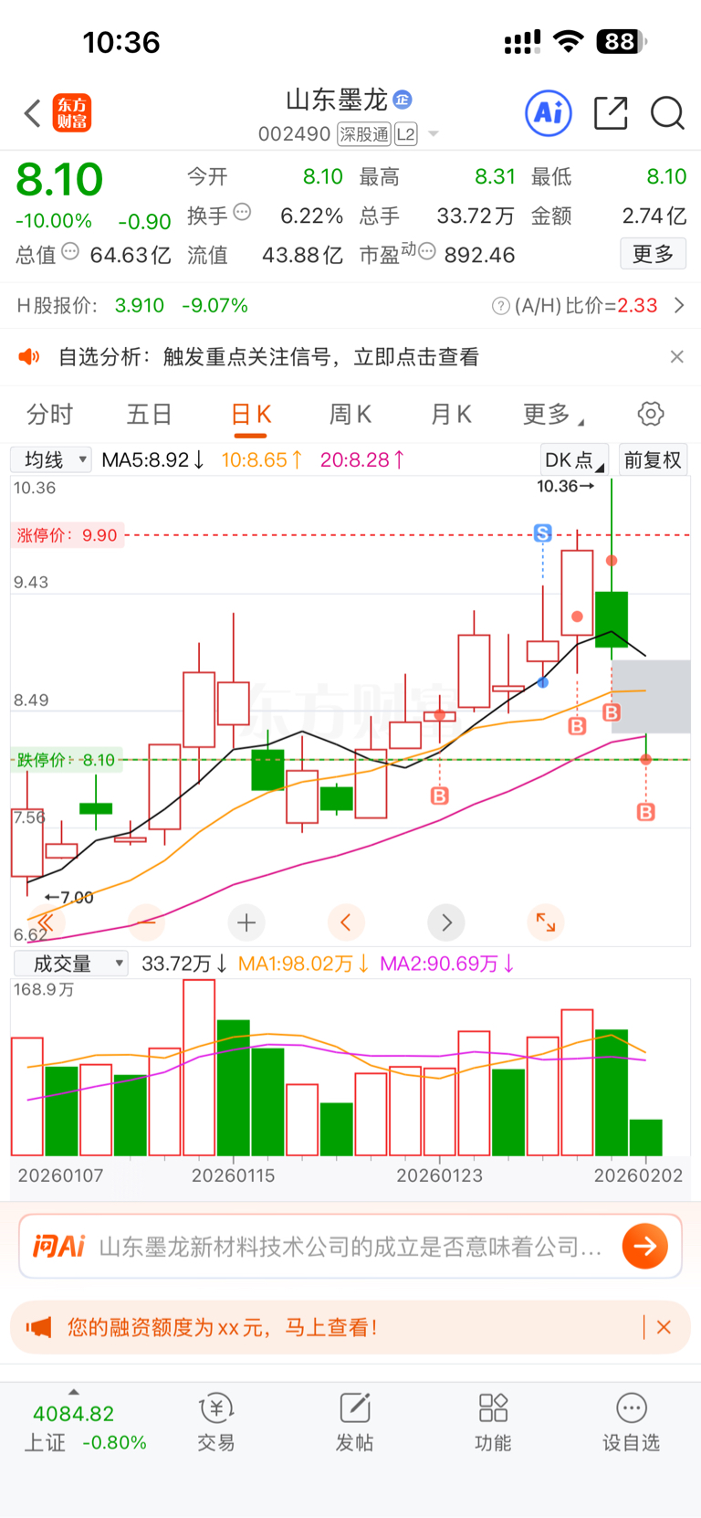$山东墨龙(SZ002490)$ 给我擦皮鞋