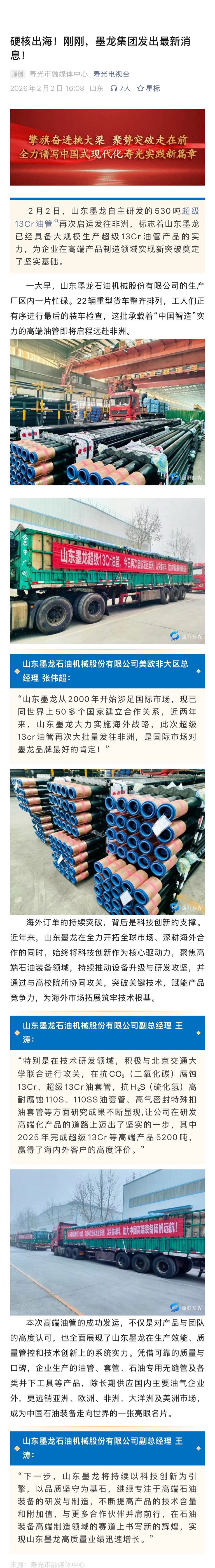 硬核出海!刚刚,墨龙集团发出最新消息!