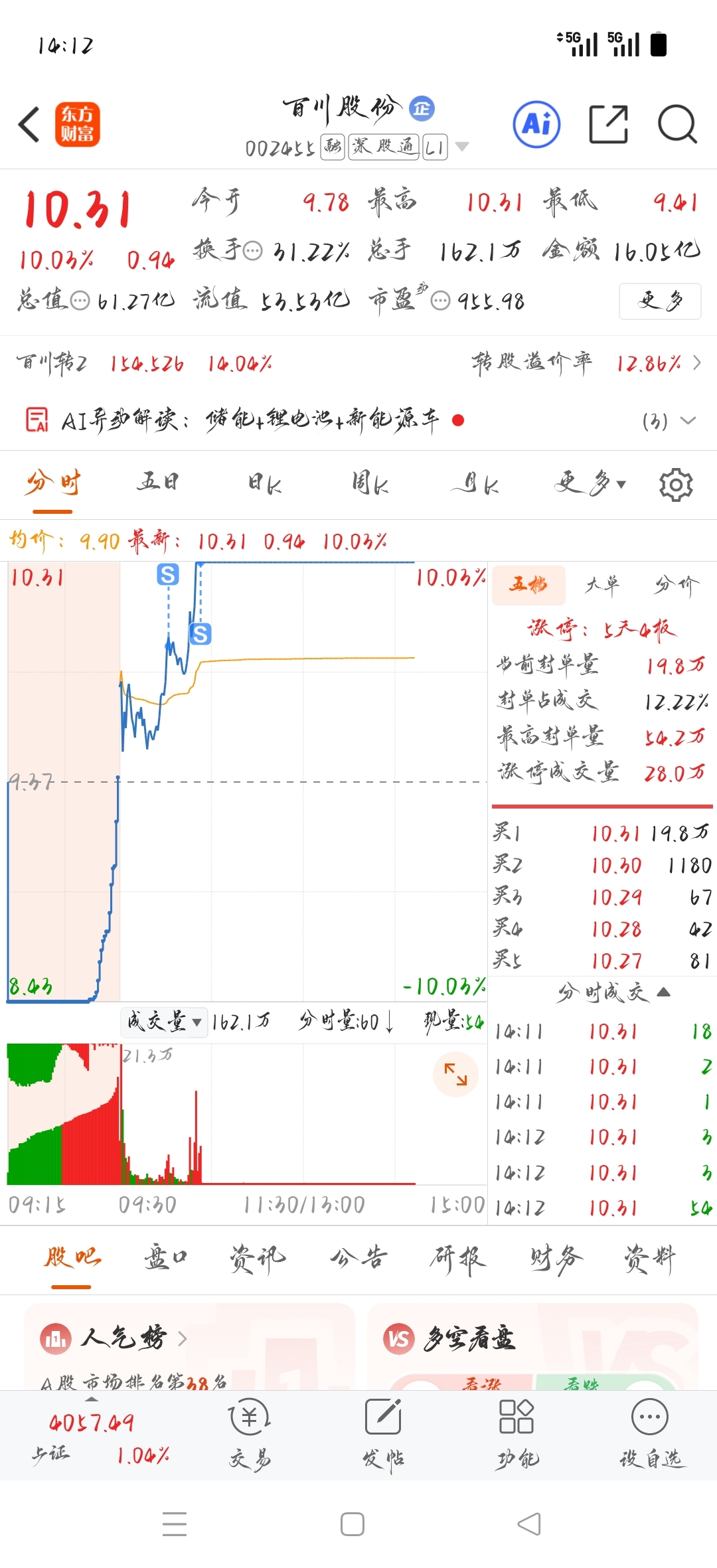 卖了百川股份又进来的~还没有起色~感觉后悔啦