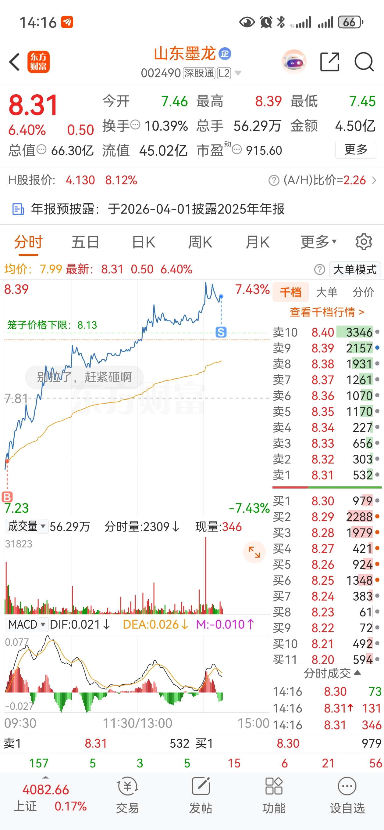 $山东墨龙(SZ002490)$ 不和你墨龙磨磨唧唧了,我T出来先了。
