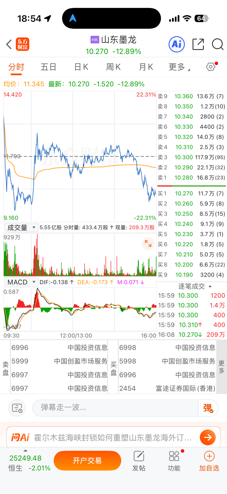 $山东墨龙(SZ002490)$ 明天废了,港股暴跌
