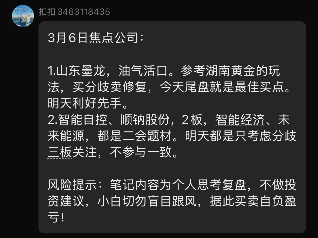 郑重声明:用户在财富号/股吧/博客等社区发表的所有信息(包括但不限于文字、视频、音频、数据及图表)仅代表个人观点,与本网站立场无关,不对您构成任何投资建议,据此操作风险自担。请勿相信代客理财、免费荐股和炒股培训等宣传内容,远离非法证券活动。请勿添加发言用户的手机号码、公众号、微博、微信及QQ等信息,谨防上当受骗!