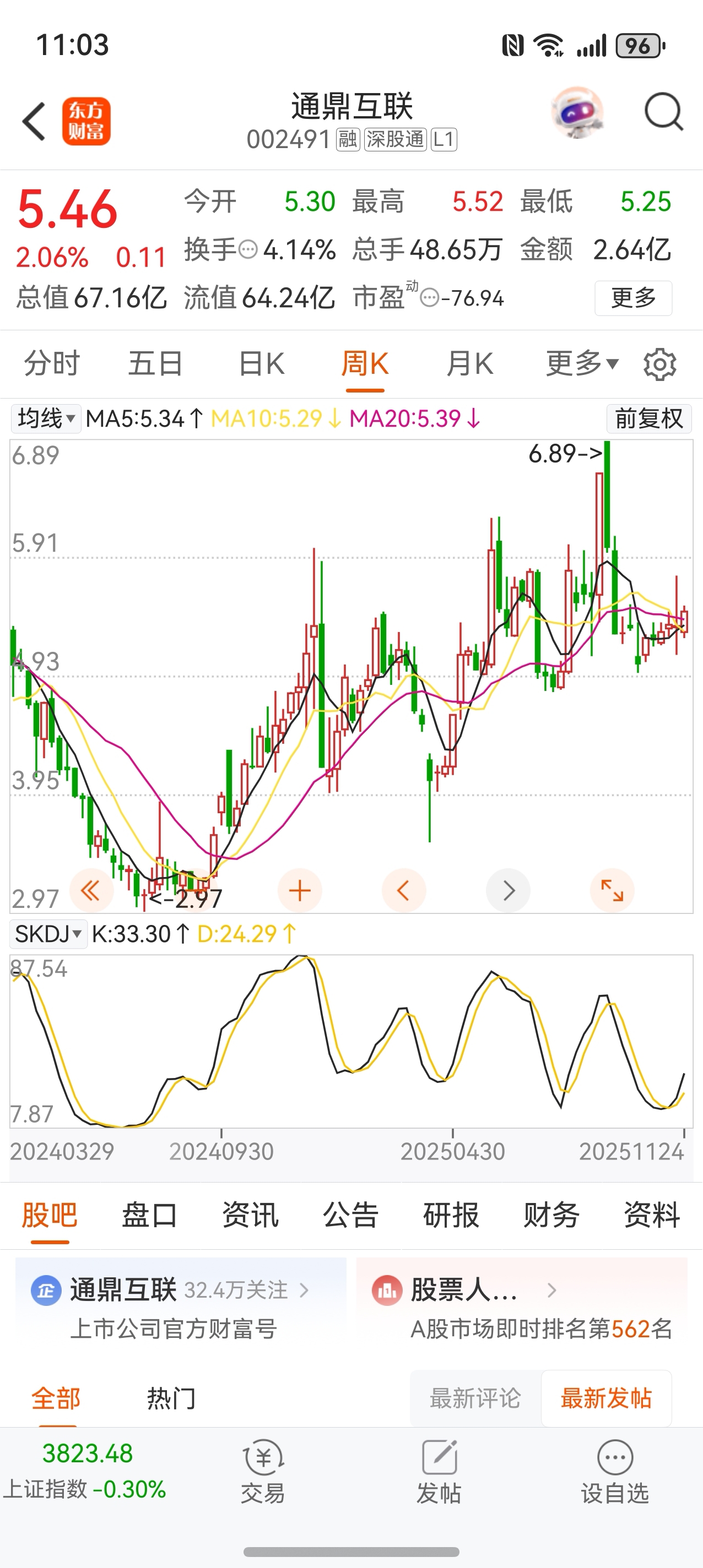$通鼎互联(SZ002491)$ 周线上周收的假阳线,再看周线skdj这个趋势,通鼎会有年底一波行情。
