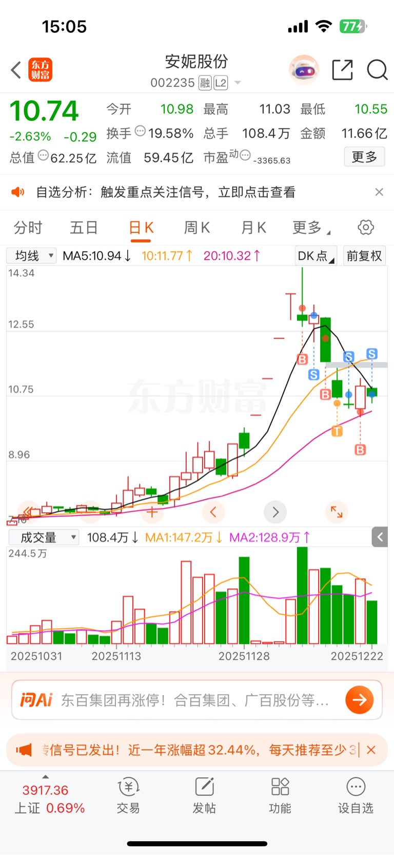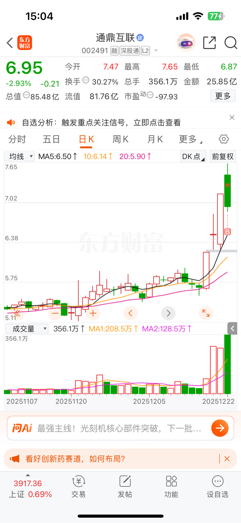 安妮亏了20个点割肉买了通鼎,一进来又亏10个点!这股票不能玩了。