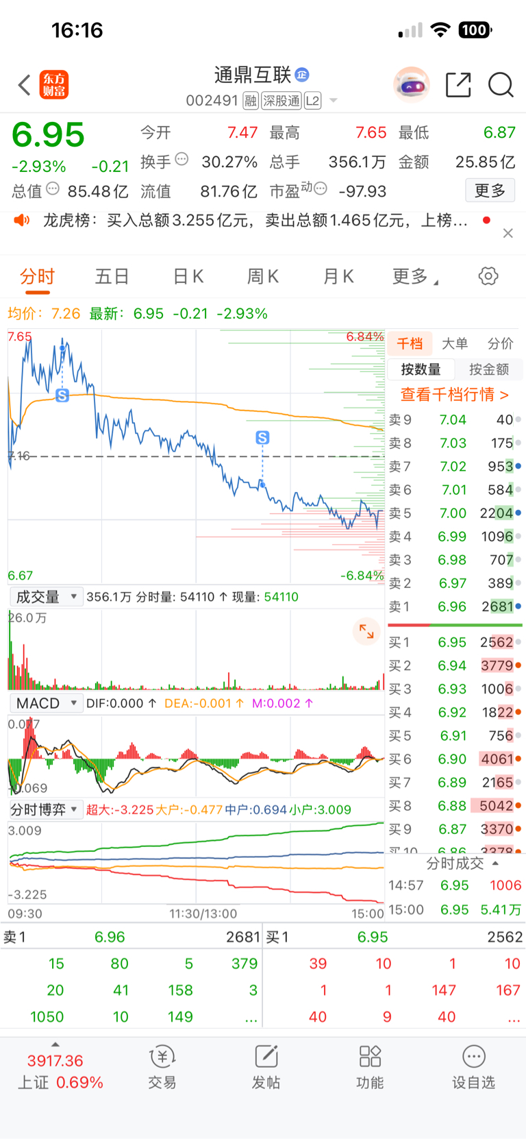 $通鼎互联(SZ002491)$ 幸亏早盘卖了一半