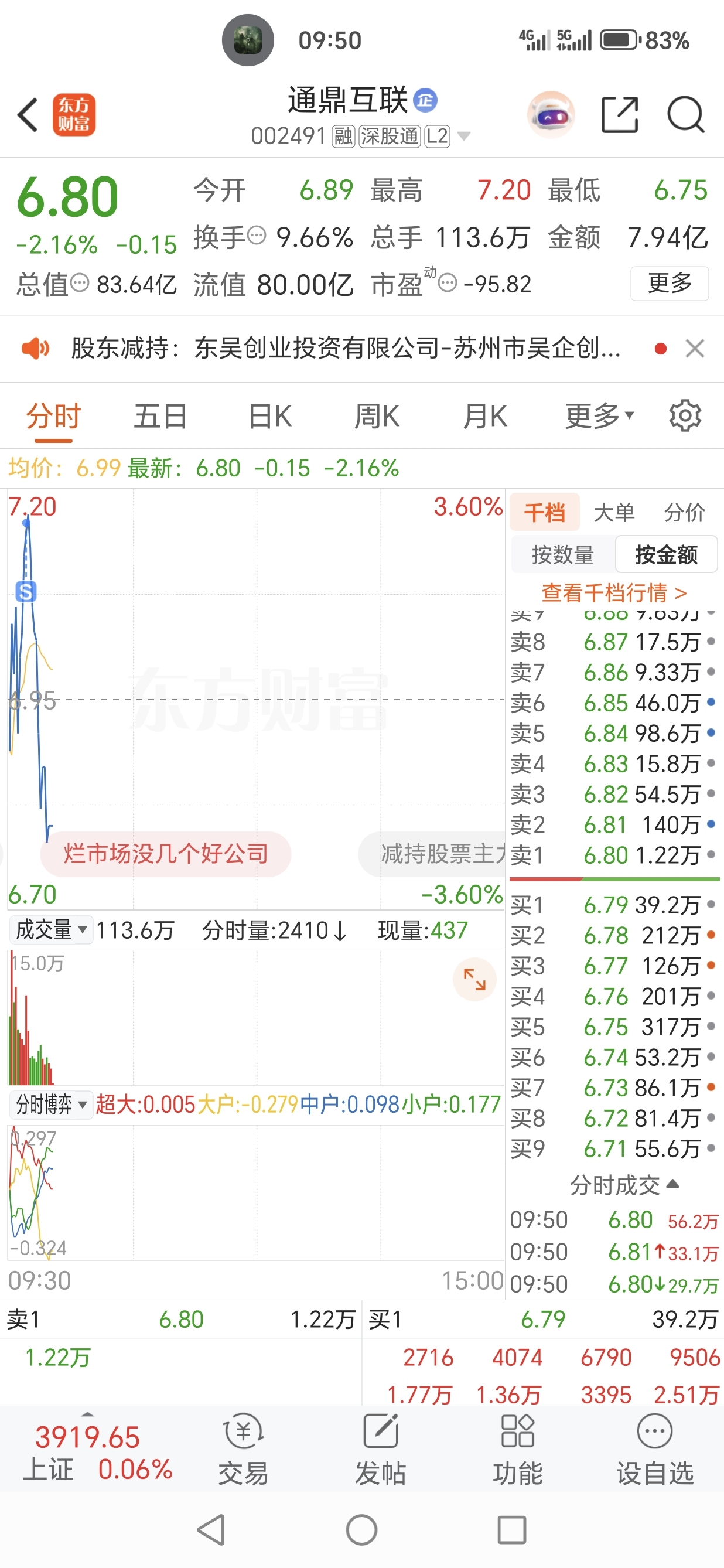 $通鼎互联(SZ002491)$ 不跑芭比Q,谢谢主力