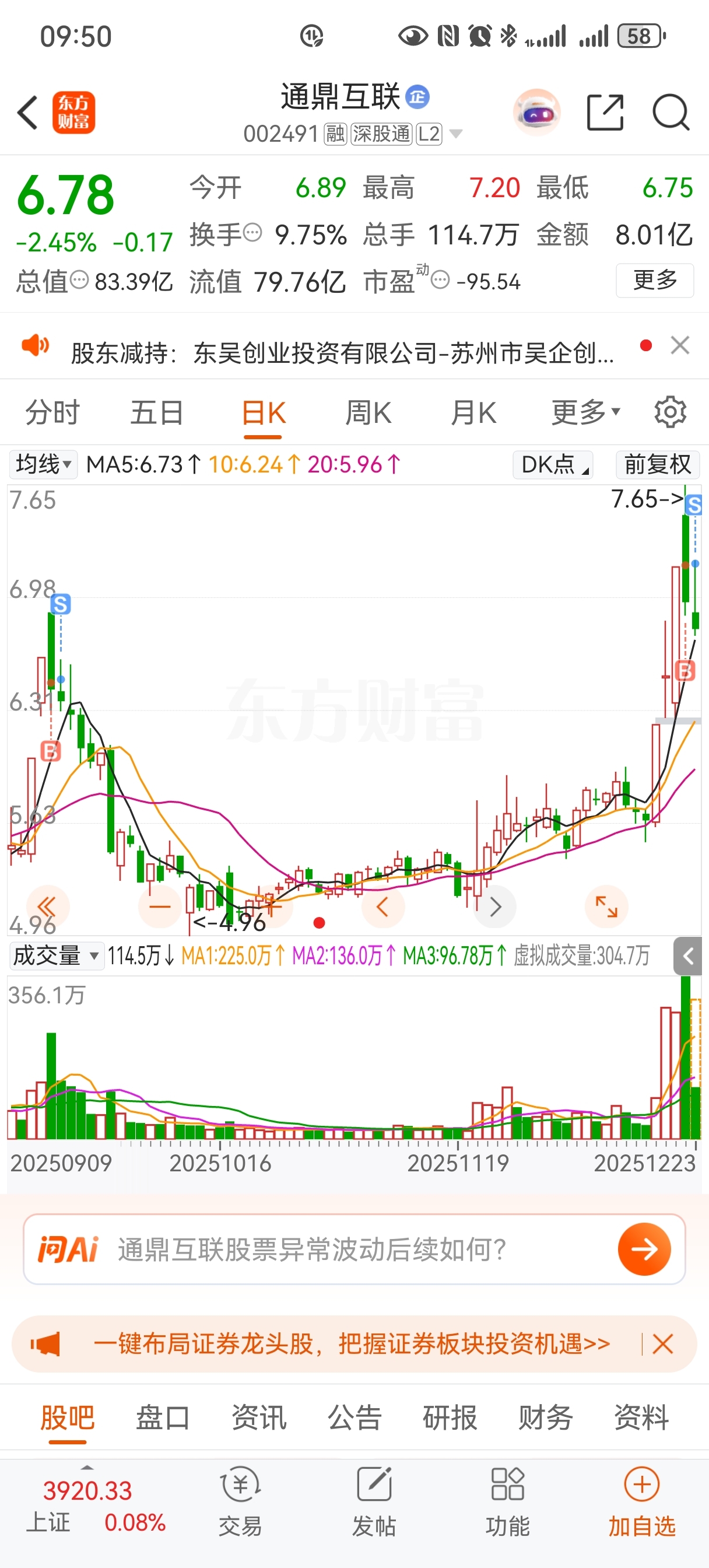 $通鼎互联(SZ002491)$ 真好,每次都给我保本出局的机会,接下来怎么走,你们猜