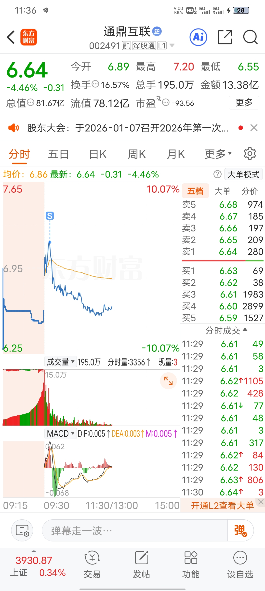 $通鼎互联(SZ002491)$ 还好跑得快,就得果断点