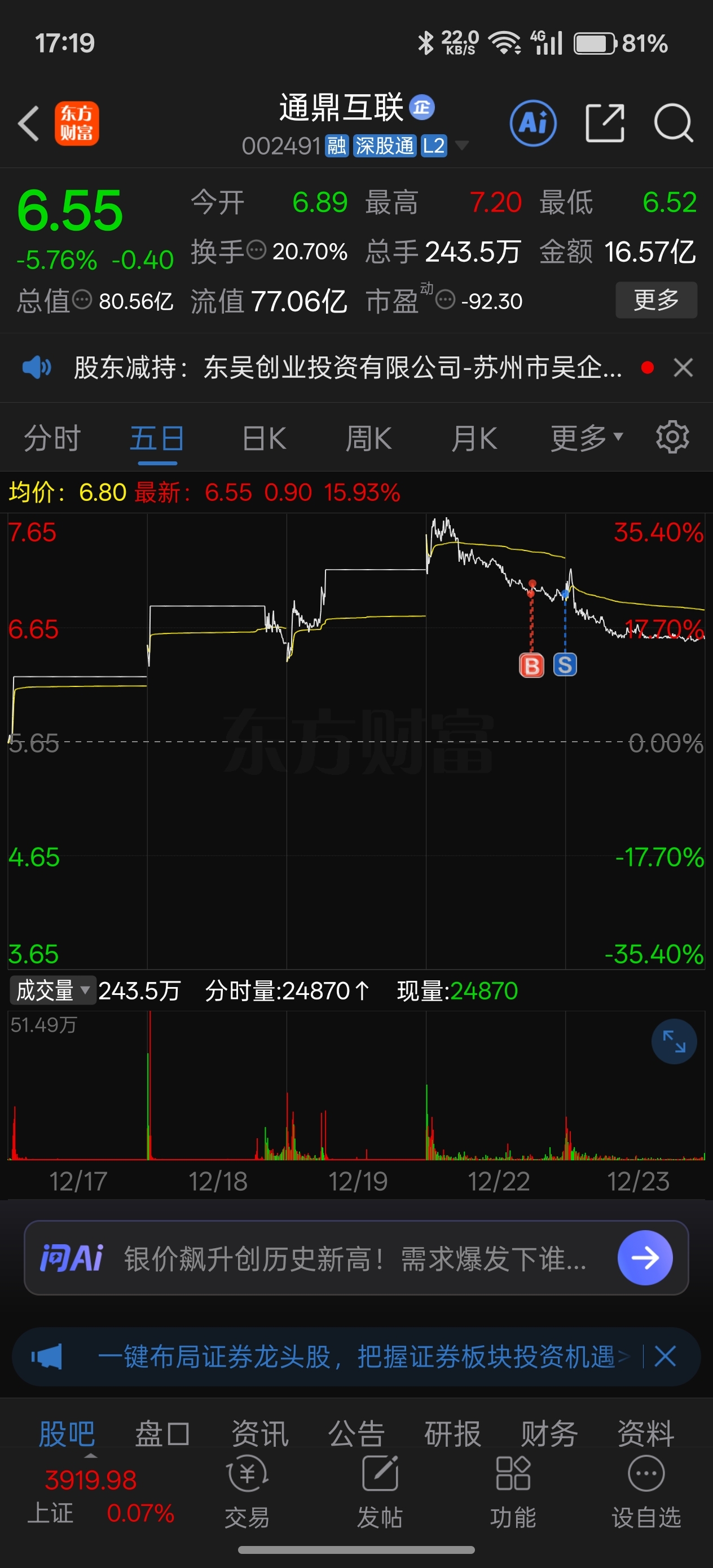 温馨提示: 1.根据《证券法》规定,禁止编造、传播虚假信息或者误导性信息,扰乱证券市场;2.用户在本社区发表的所有资料、言论等仅代表个人观点,与本网站立场无关,不对您构成任何投资建议。用户应基于自己的独立判断,自行决定证券投资并承担相应风险。《东方财富社区管理规定》