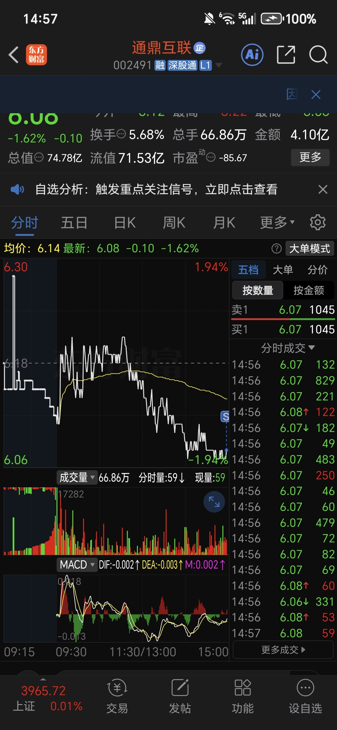 $通鼎互联(SZ002491)$ 走了,亏了17个点,拉黑此股