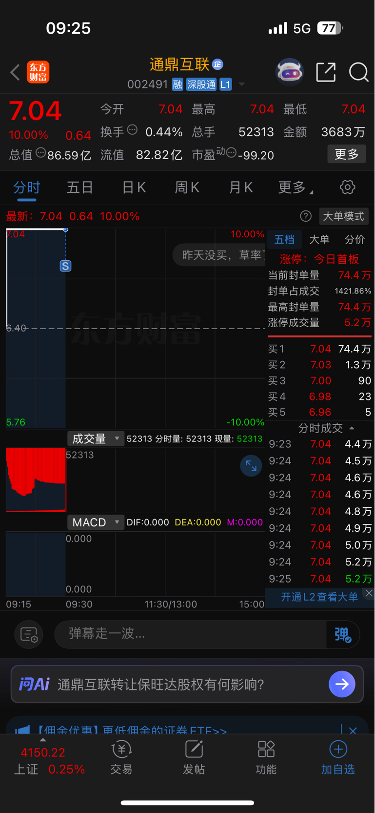 $通鼎互联(SZ002491)$ 见好就收