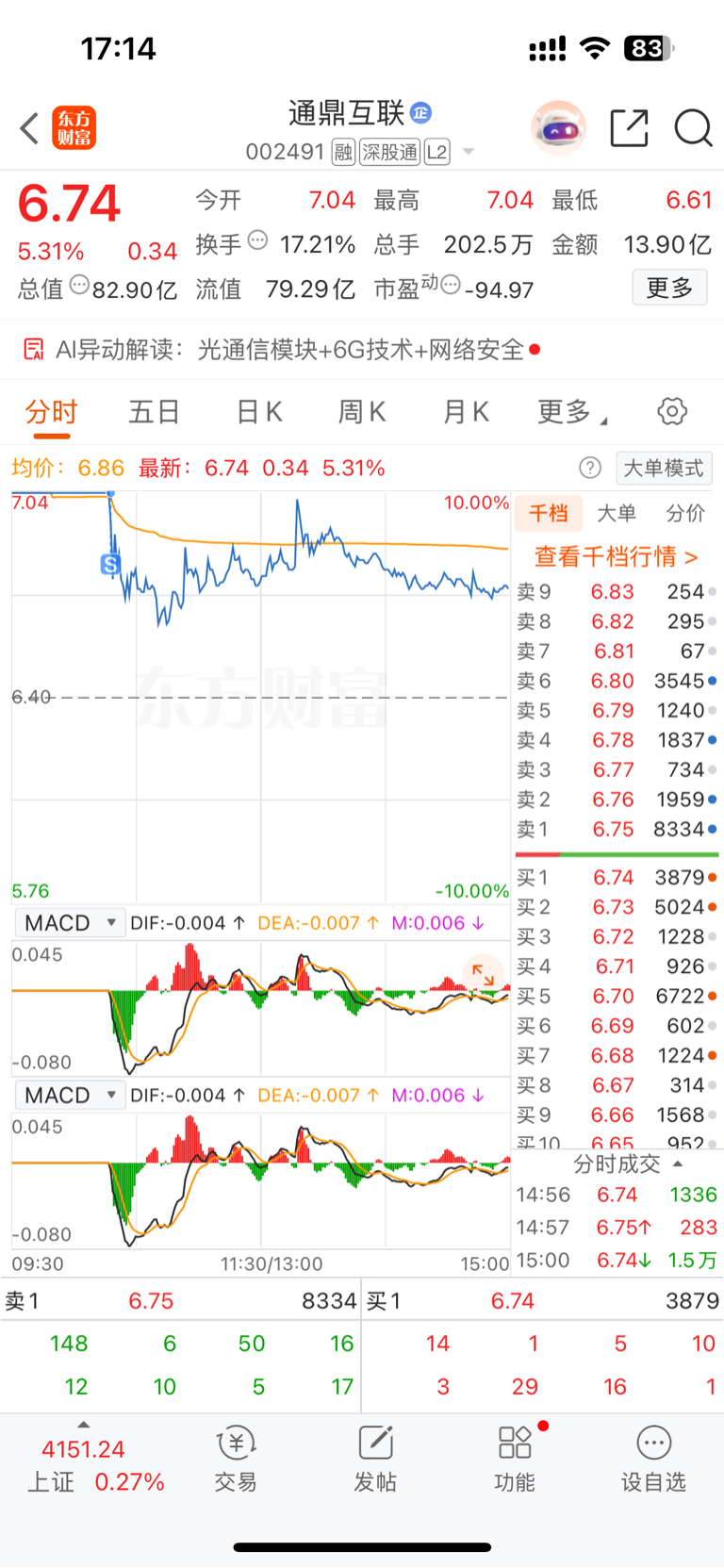 $通鼎互联(SZ002491)$ 眼看着要开板了 马上扔了 扔后几秒开板了