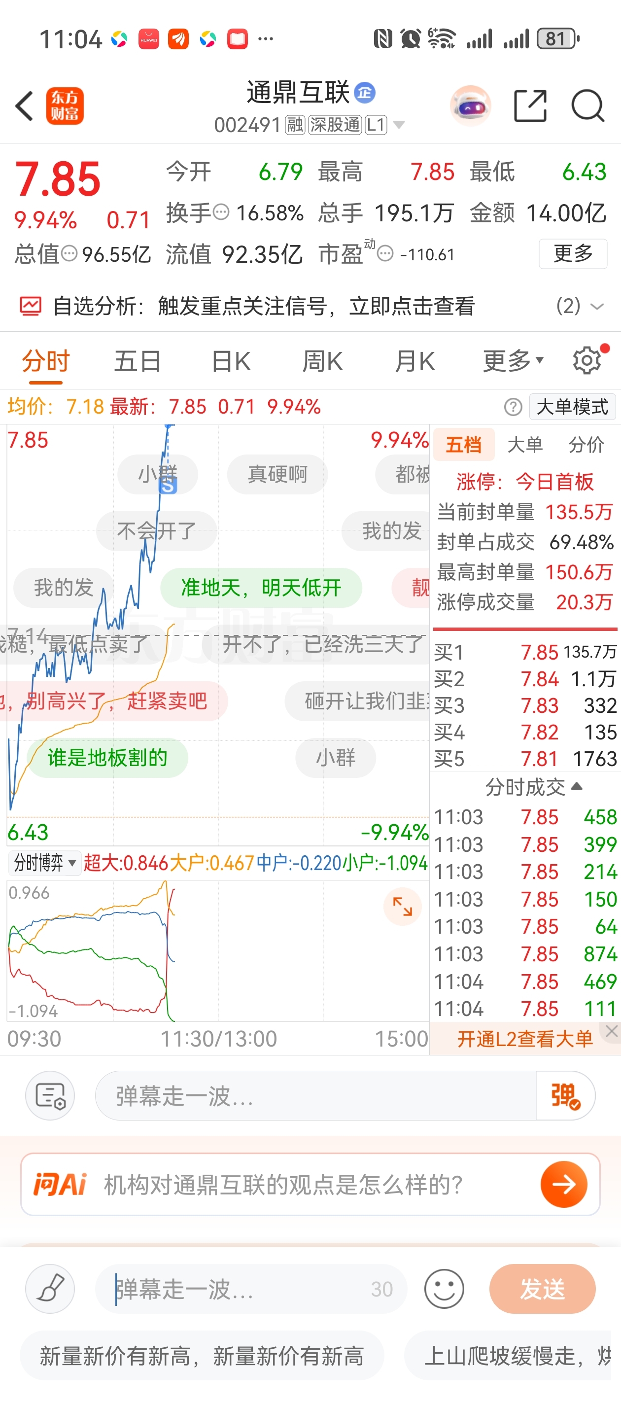 $通鼎互联(SZ002491)$ 成功卖飞