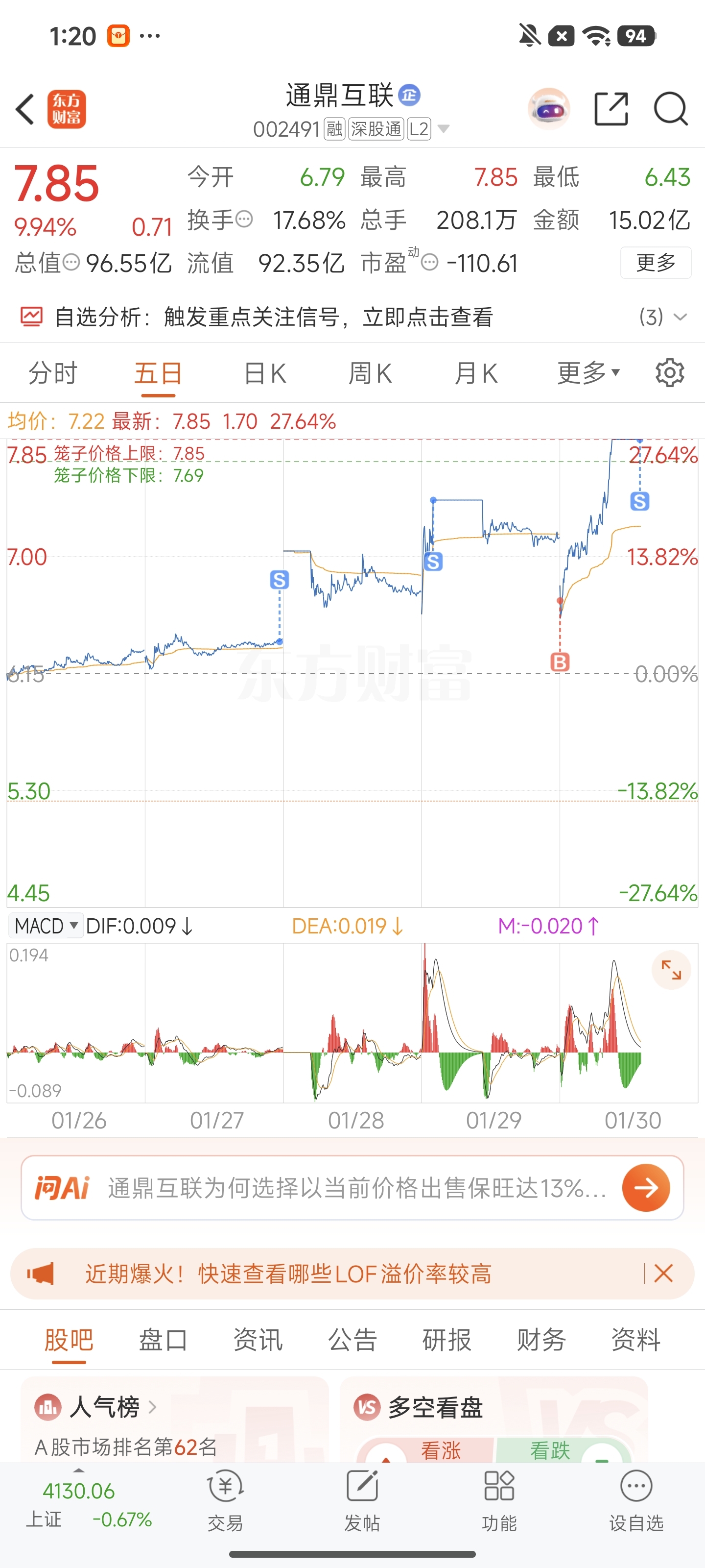 $通鼎互联(SZ002491)$ 要炸板