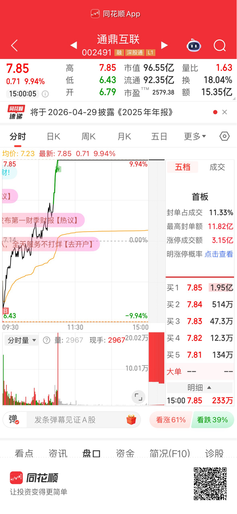 $通鼎互联(SZ002491)$ 第一次抄到底