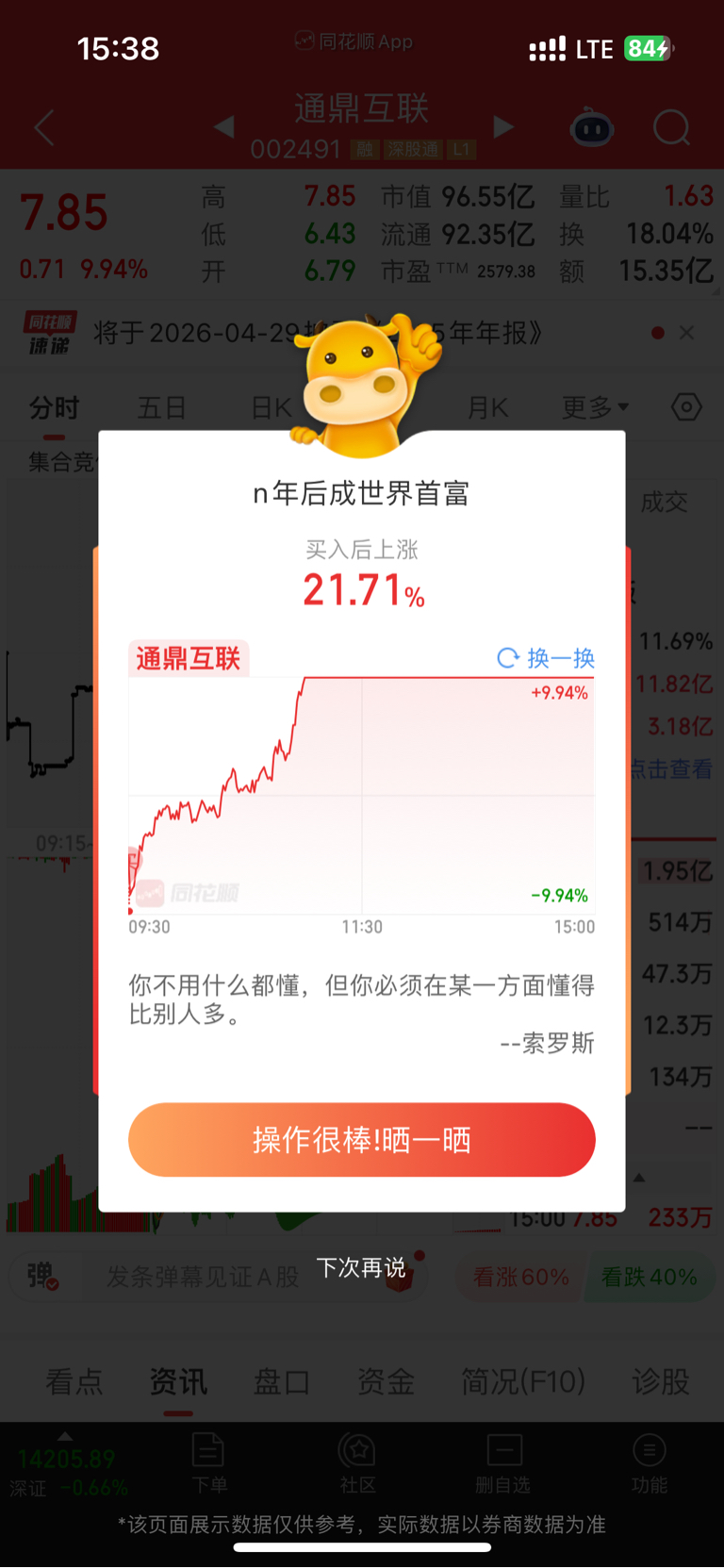 $通鼎互联(SZ002491)$ 第一次买到地天