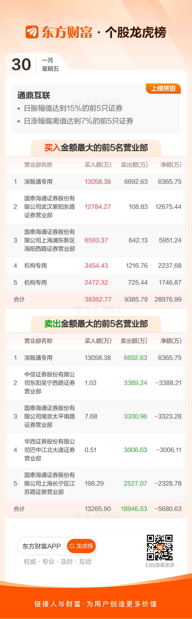 通鼎互联(002491)龙虎榜数据(01-30)