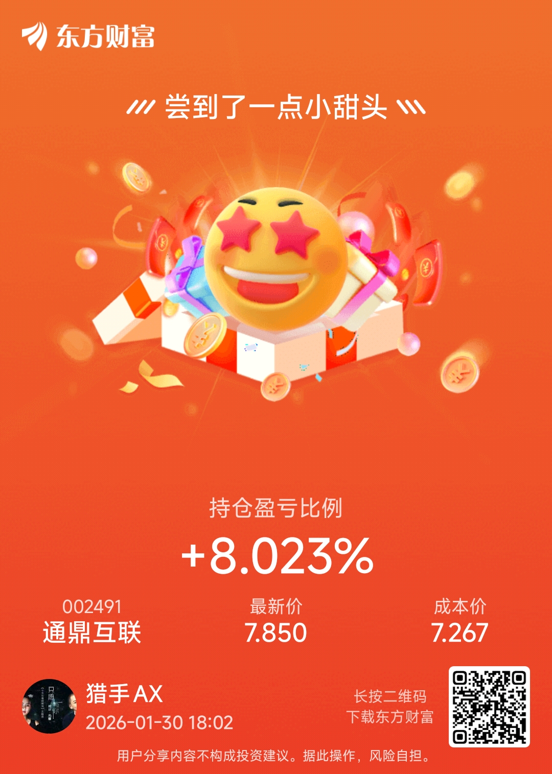 温馨提示: 1.根据《证券法》规定,禁止编造、传播虚假信息或者误导性信息,扰乱证券市场;2.用户在本社区发表的所有资料、言论等仅代表个人观点,与本网站立场无关,不对您构成任何投资建议。用户应基于自己的独立判断,自行决定证券投资并承担相应风险。《东方财富社区管理规定》