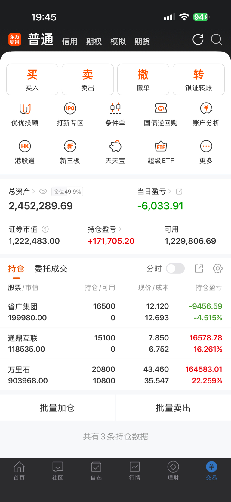 $通鼎互联(SZ002491)$ 今天三只都T了,三只都没算T的很好,不然今天不至于绿。$省广集团(SZ002400)$ $万里石(SZ002785)$ #复盘记录# #炒股日记# #实盘记录#