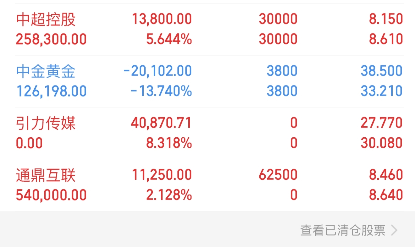 今日早盘介入了通鼎互联今天给了机会,龙哥毫不犹豫上车。上周介入的中超控股今天再次反包涨停,兄弟们都还一直拿着吧?上周五介入的引力传媒今天逢高出局吃了口大肉