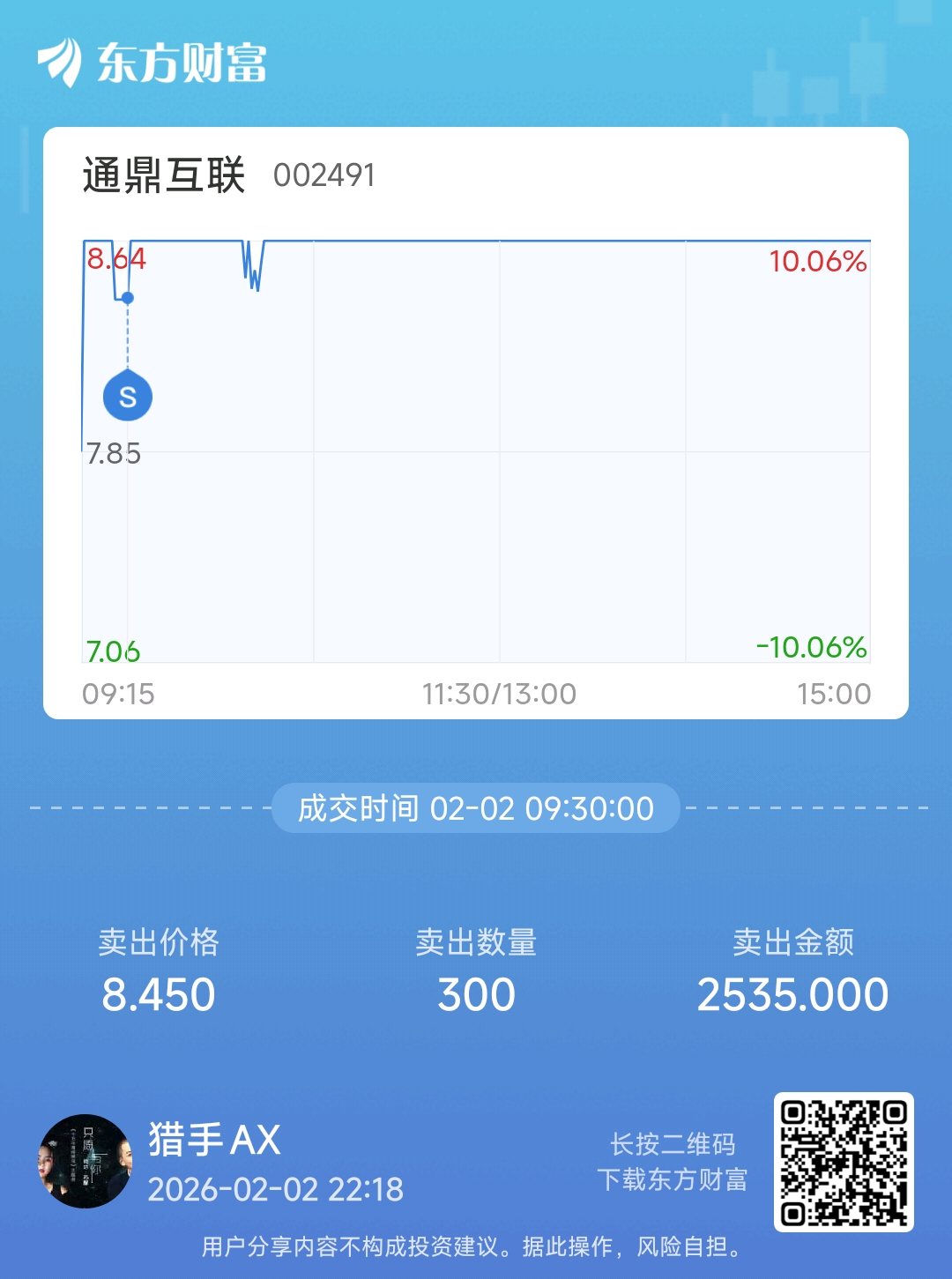 温馨提示: 1.根据《证券法》规定,禁止编造、传播虚假信息或者误导性信息,扰乱证券市场;2.用户在本社区发表的所有资料、言论等仅代表个人观点,与本网站立场无关,不对您构成任何投资建议。用户应基于自己的独立判断,自行决定证券投资并承担相应风险。《东方财富社区管理规定》