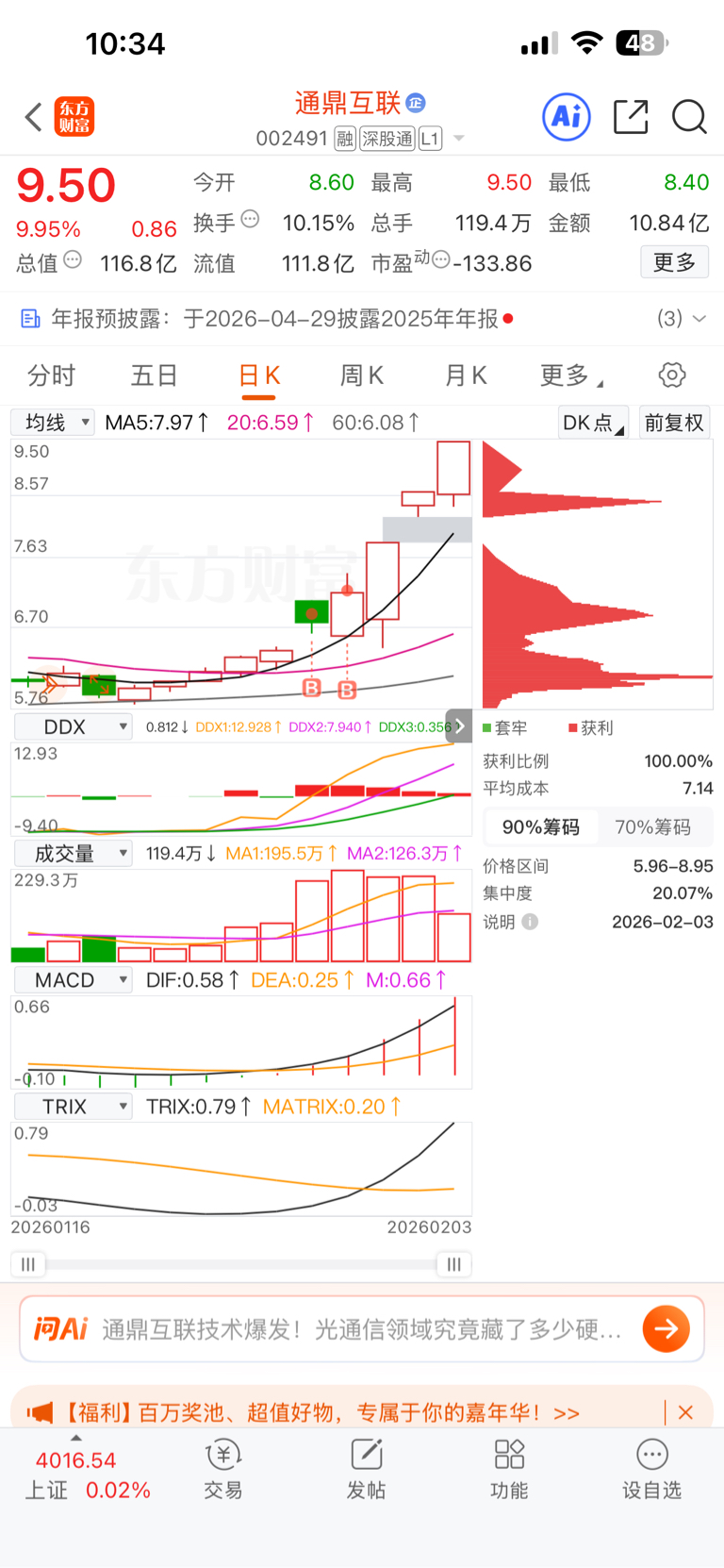 $通鼎互联(SZ002491)$ 昨天祈祷今天再来一个吧,果然再给了一个板
