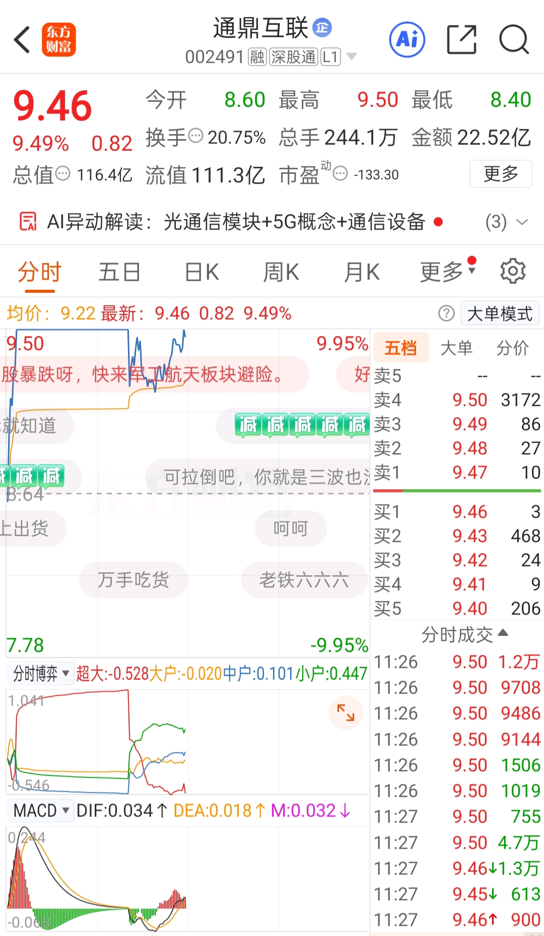 $通鼎互联(SZ002491)$ 都特么散户在买,,主力都没意愿