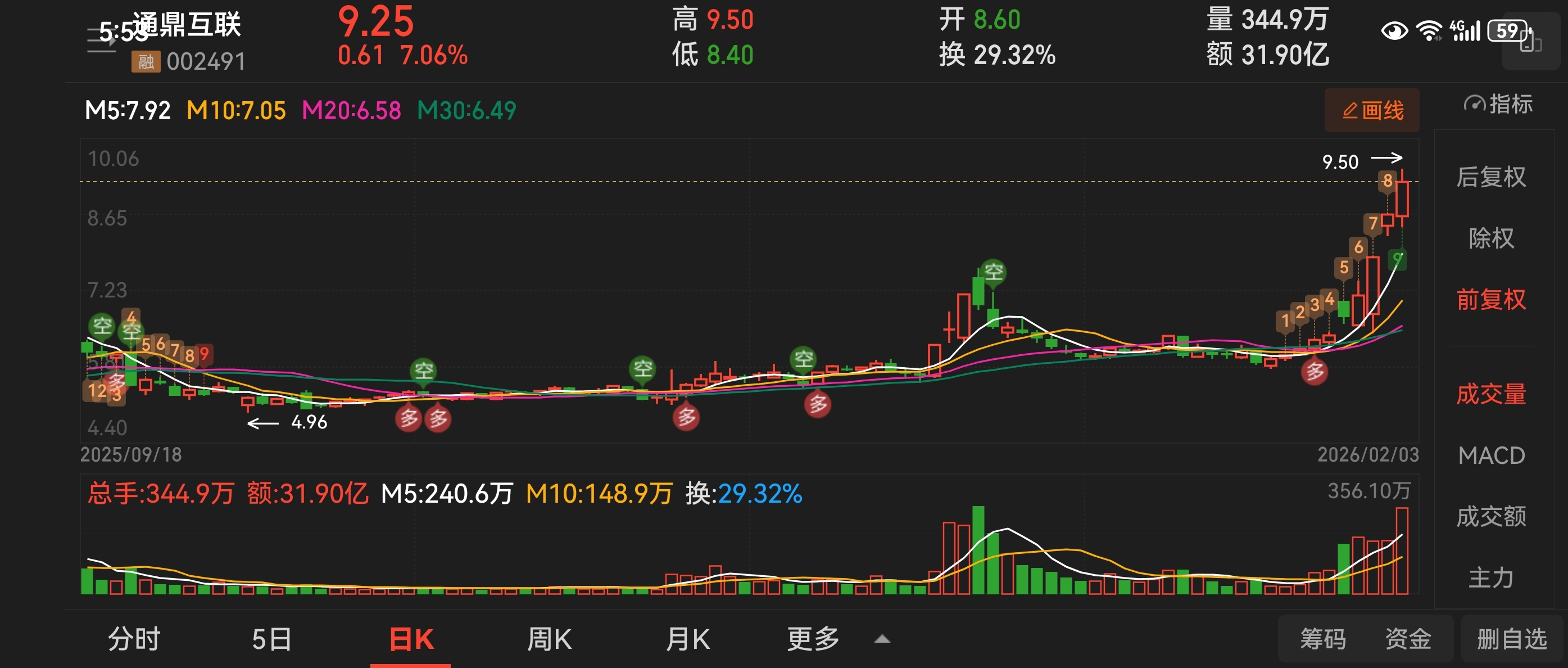 $通鼎互联(SZ002491)$ 通鼎有点高了,注点意吧!有可能要