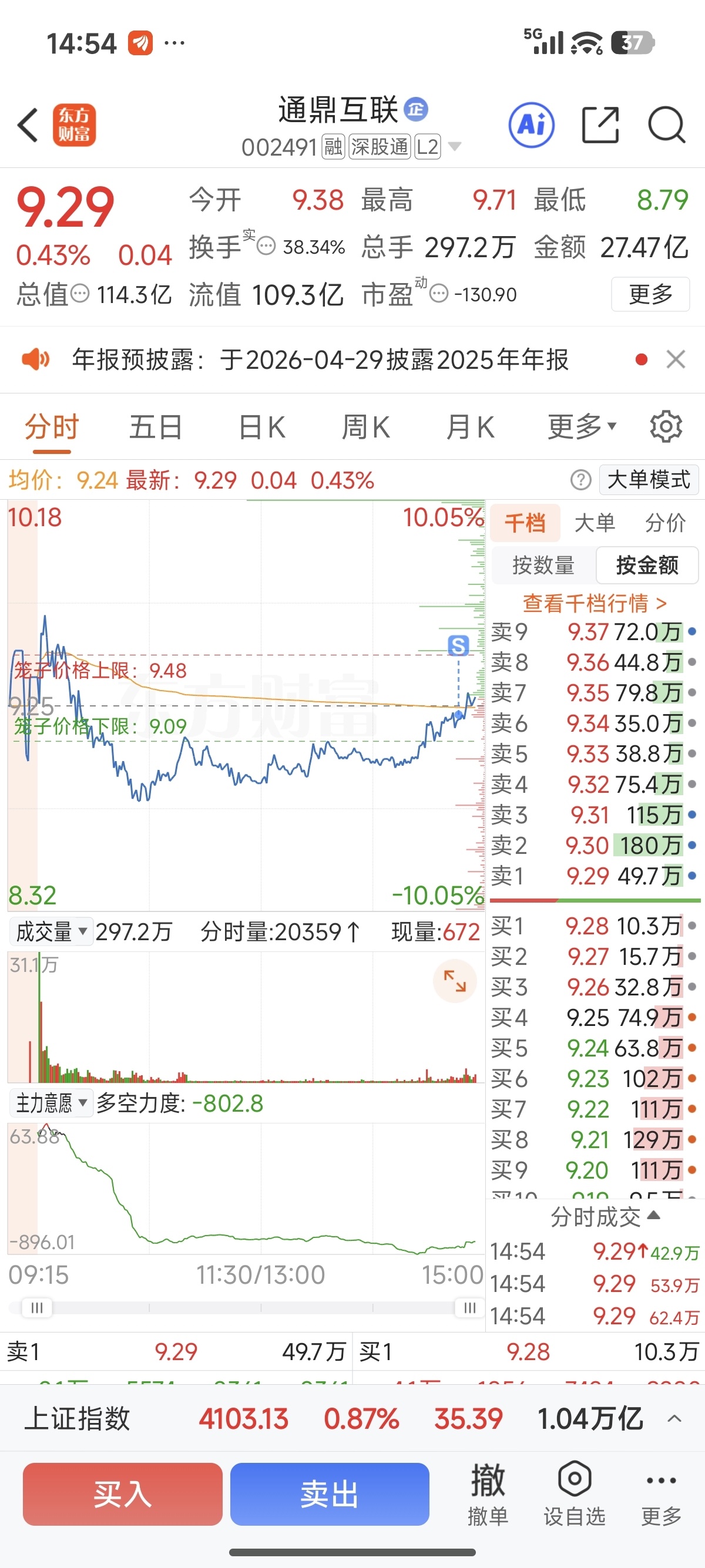 $通鼎互联(SZ002491)$ 早上没走,哎