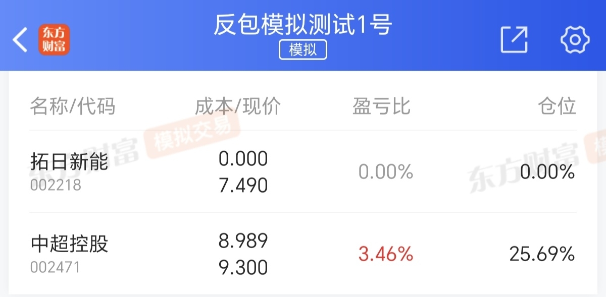 模拟一号盘止盈拓日新能,祝各位好运,抄底中超控股继续做反包低吸