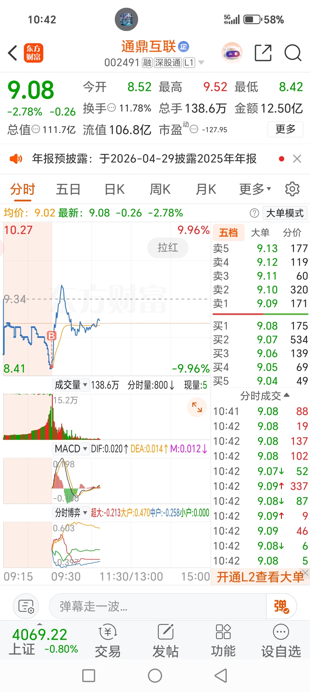 $通鼎互联(SZ002491)$ 各位股友好,我今天又进了,