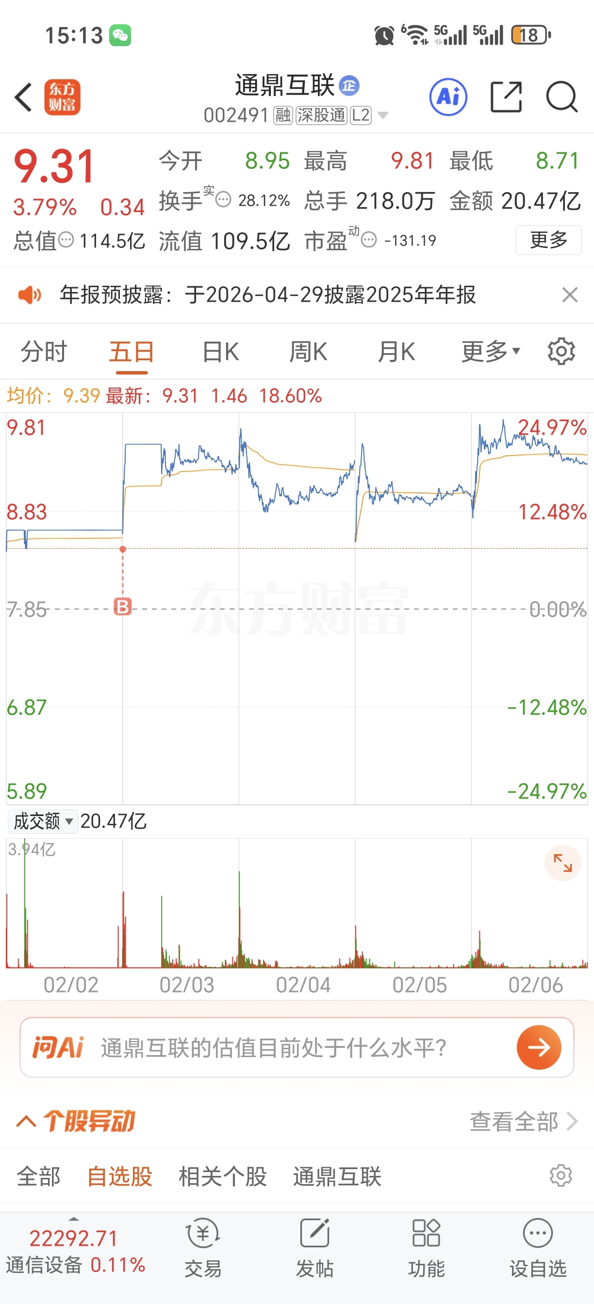 $通鼎互联(SZ002491)$ 没做t感觉错过一个亿