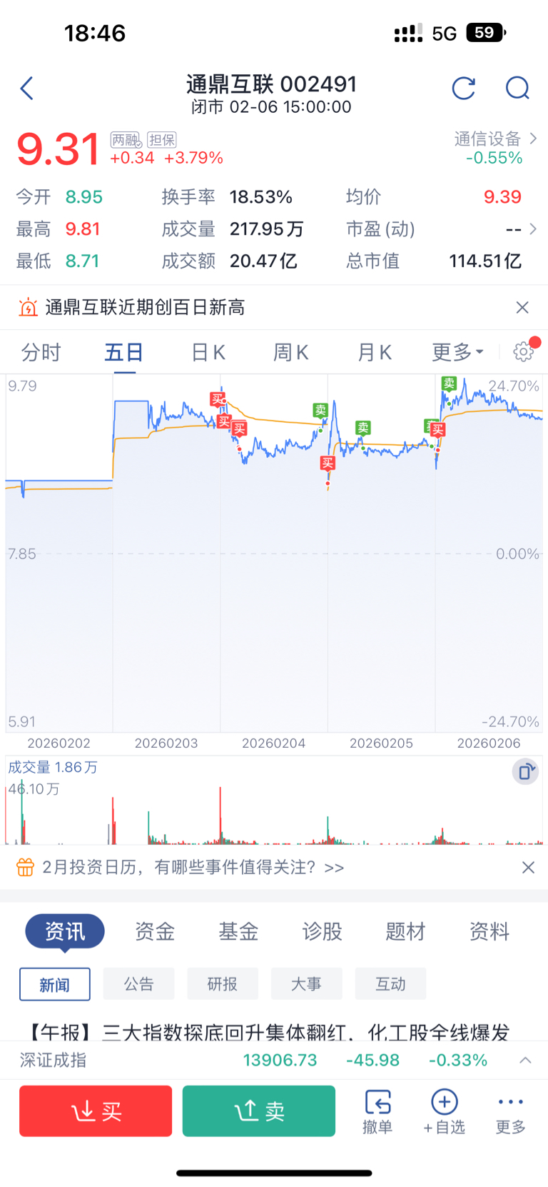$通鼎互联(SZ002491)$ 不知道什么是错,拿到手里的才是对的,市场机会很多,把自己的预期降低将会有无限可能,可以做5%的利润,可以承受3%的亏损